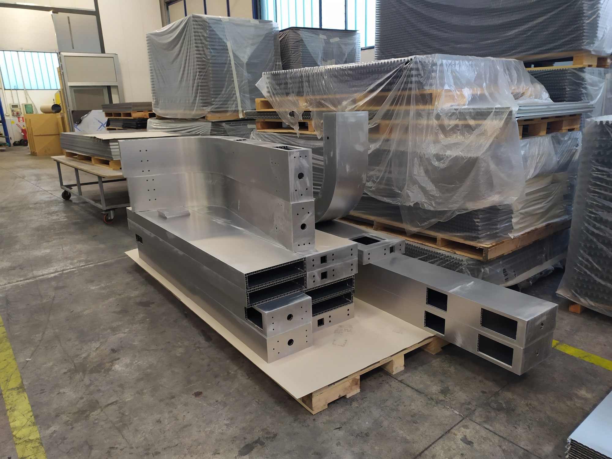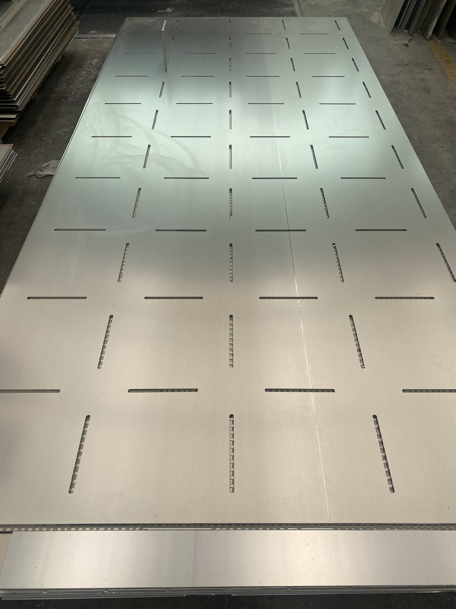 Wallflex® aluminum panels could be cut and worked according to specific customer requirements and it is possible to create the most varied geometries. The work on the panels takes place using machinery similar to those used for woodworking; this thanks to the high workability of Wallflex®. In consideration of the tight tolerances required for bending along the edges, the aluminum panels are machined on CNC machines.