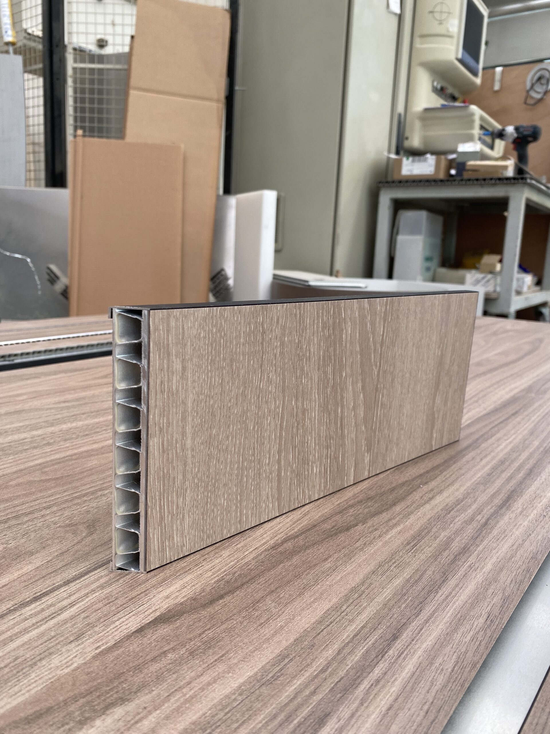 The edging can also be made with extruded aluminum, plastic or ABS; in this case the profiles, which can have different sections I, T and C, are fixed to the edge of the aluminum panel by means of glue.