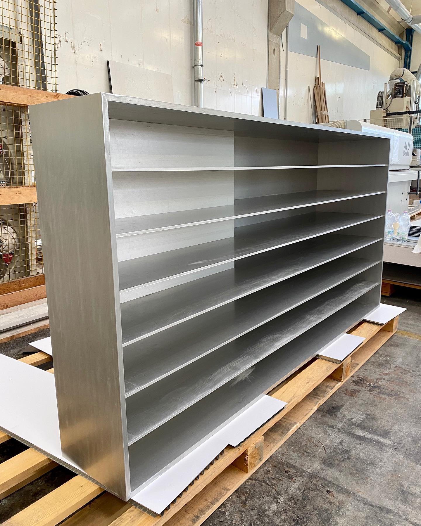 Starting from a flat panel our carpentry is able to create finished objects; through sectioning, edges made with the folding method and “V” incisions we are able to obtain a finished element made with very few visible joints and extremely more resistant also from a structural point of view.
