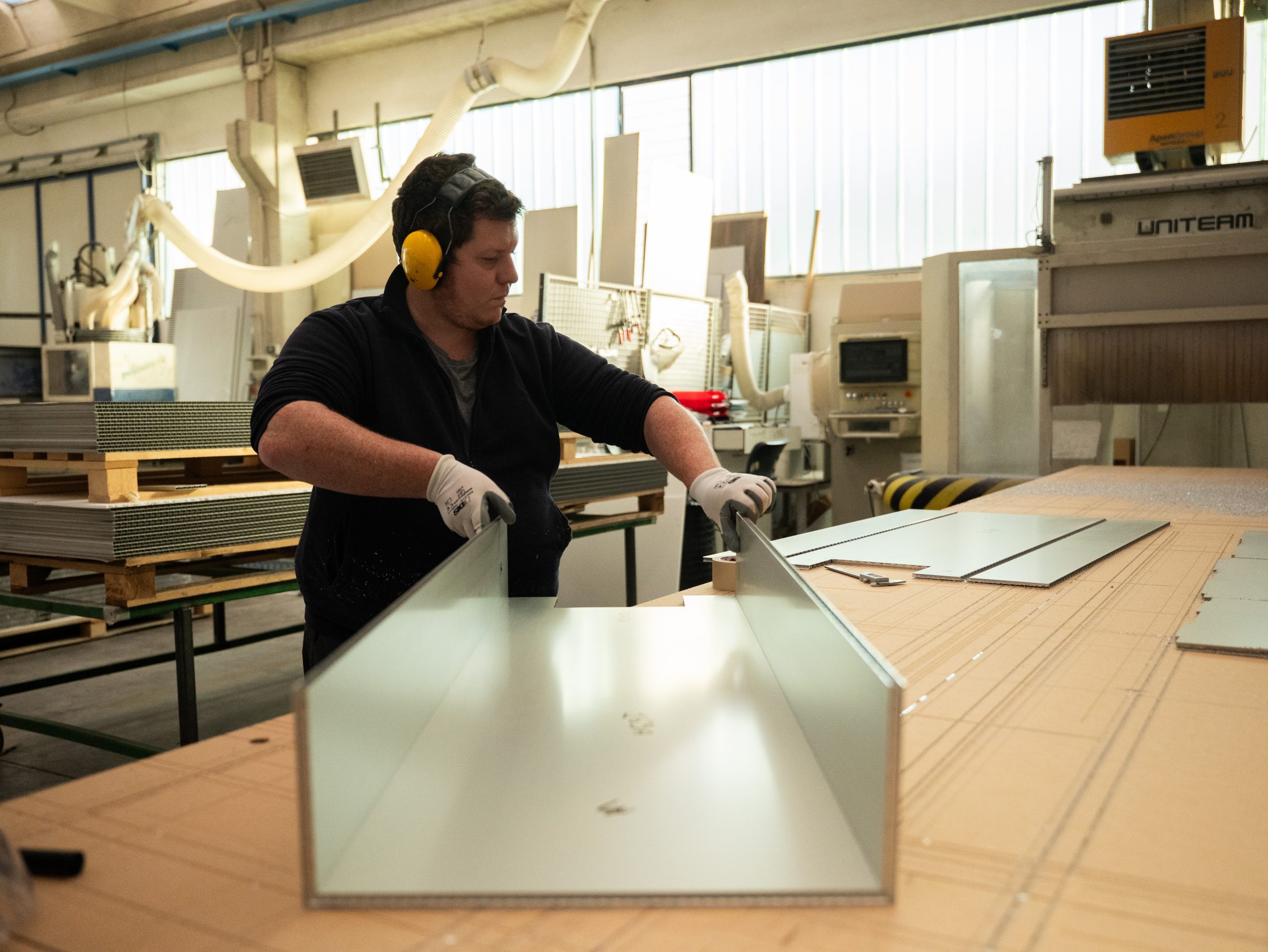 Processing is carried out using machinery similar to that used for woodworking and, to ensure precise tolerances in bends and edges, the panels are also machined on CNC equipment.