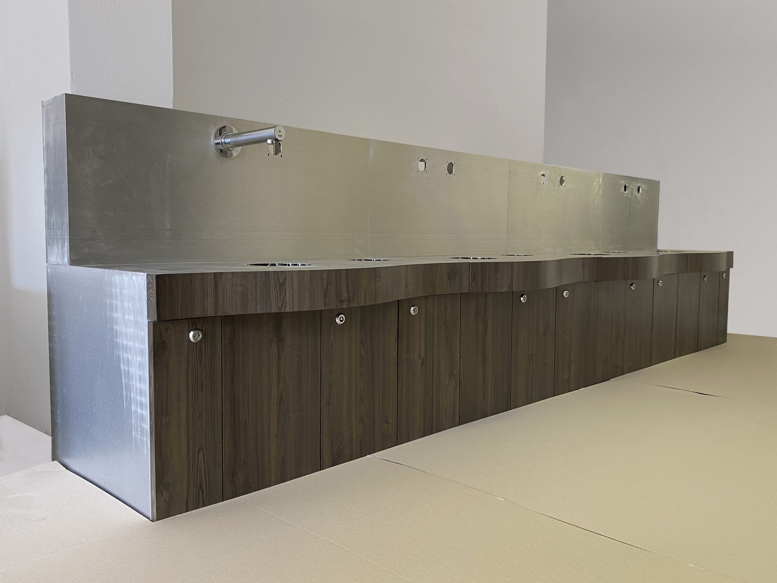 • Nobilitazione con laminati, acciaio, solid surface, pietre o vero legno