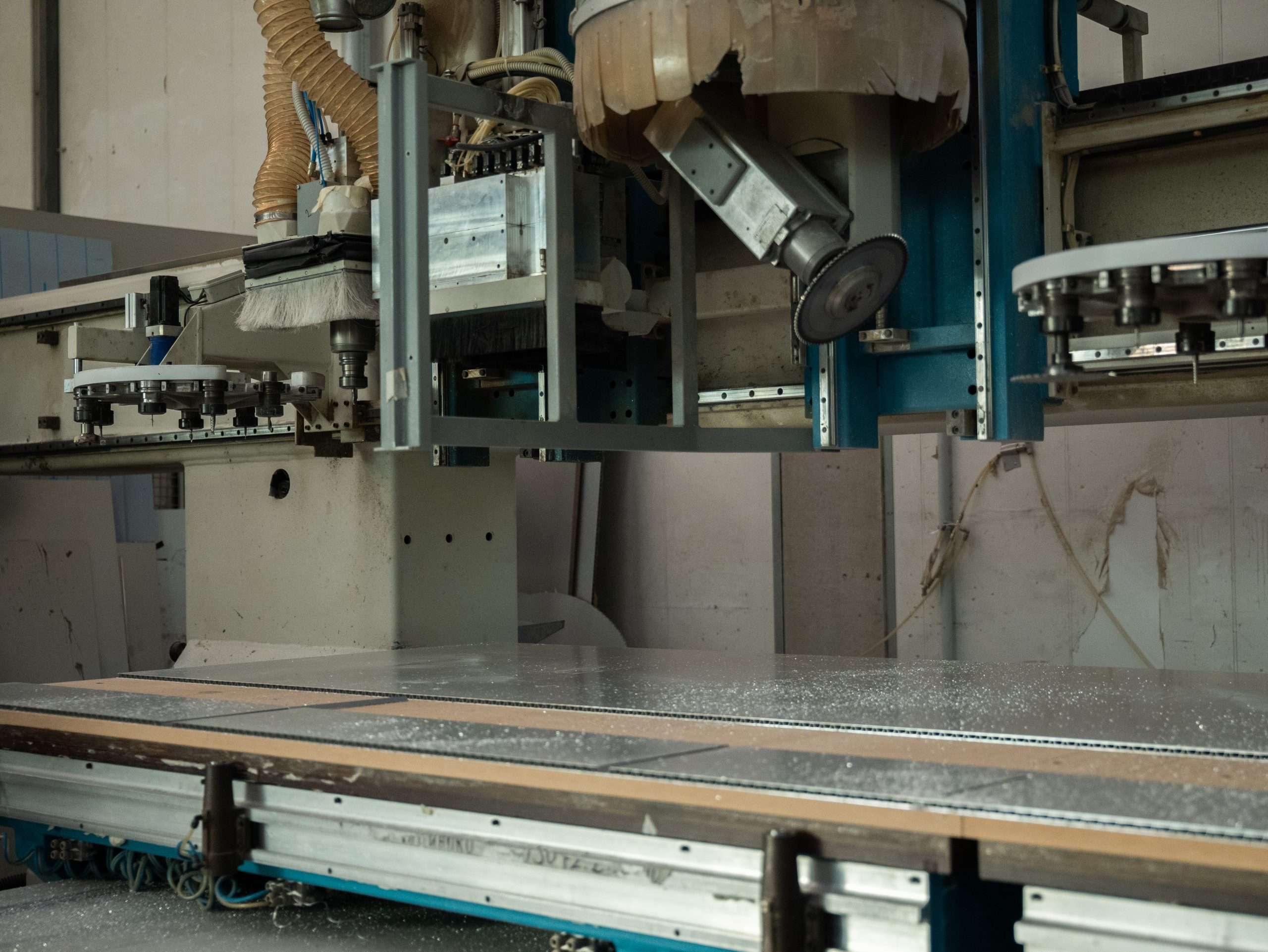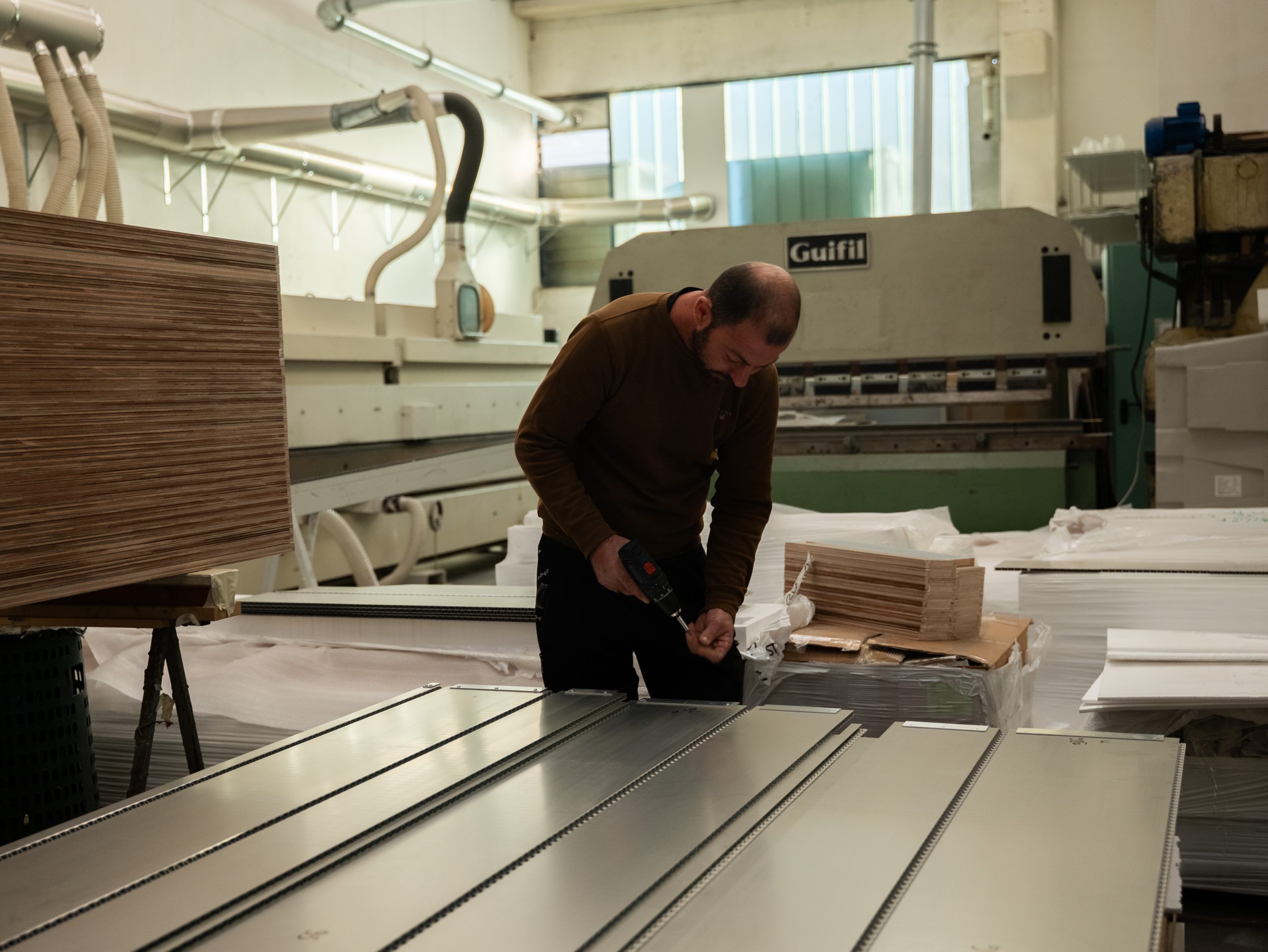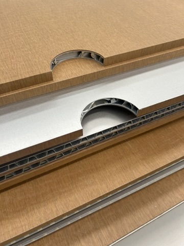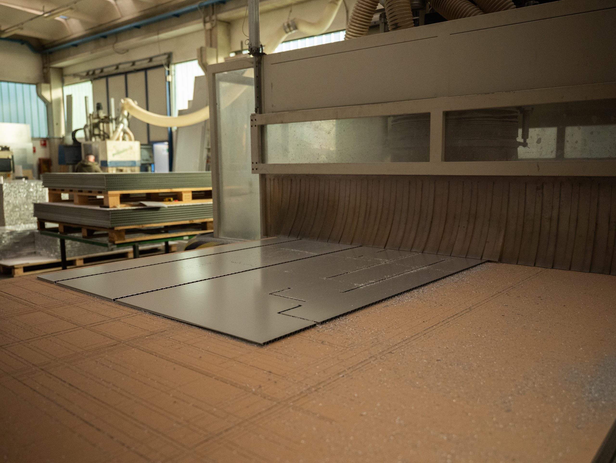 La lavorazione avviene tramite macchinari analoghi a quelli utilizzati per il legno e, per garantire tolleranze precisenelle piegature e nei bordi, i pannelli vengono lavorati anche su macchine CNC.