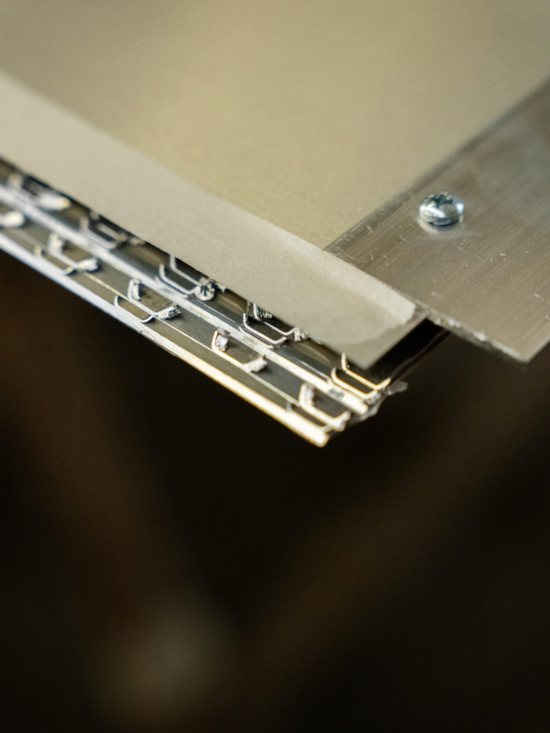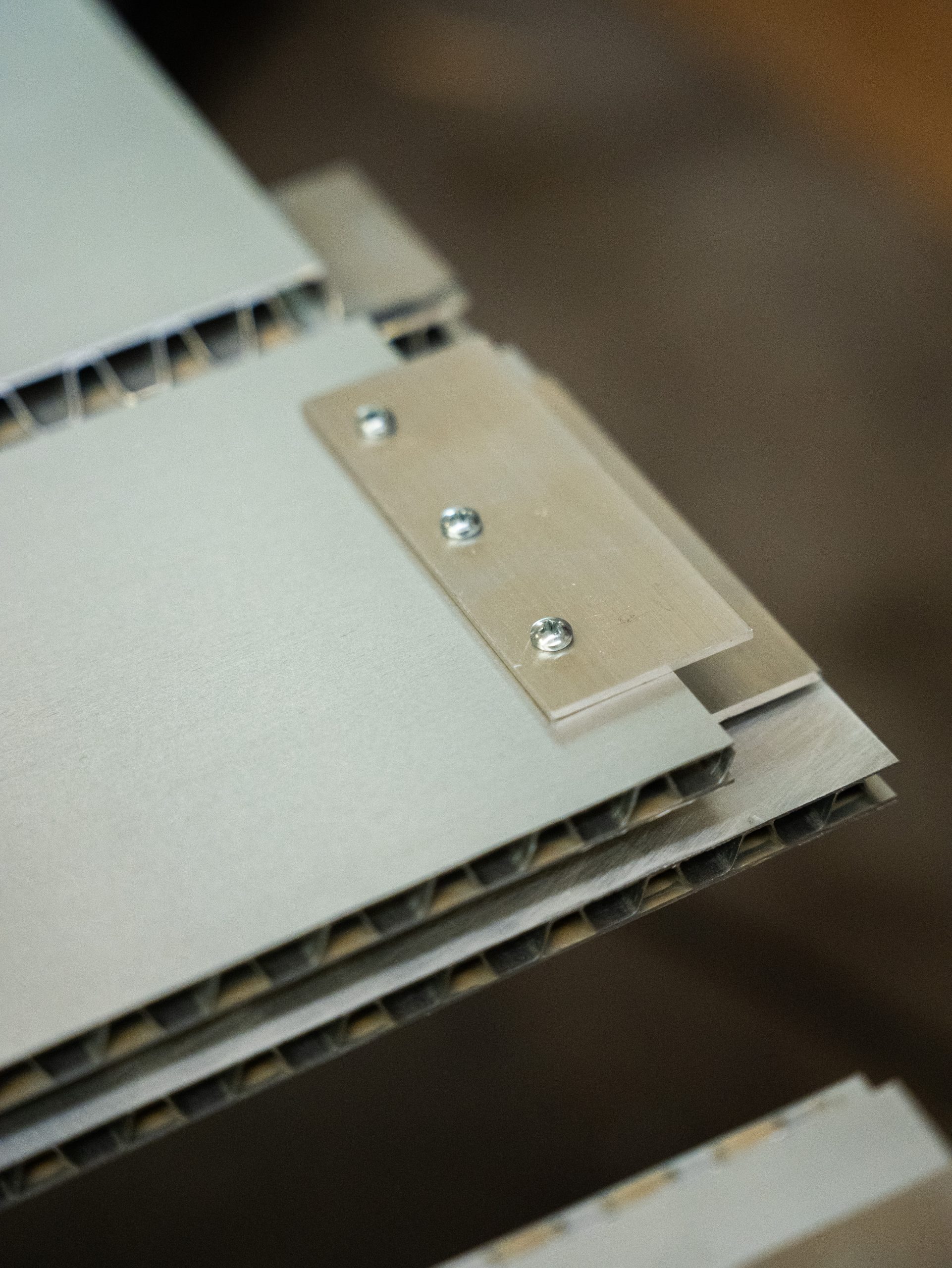 - Nastri in alluminio o PVC: incollati sul bordo del pannello, nascondono lo spessore delle pelli e garantiscono una finitura pulita e uniforme.